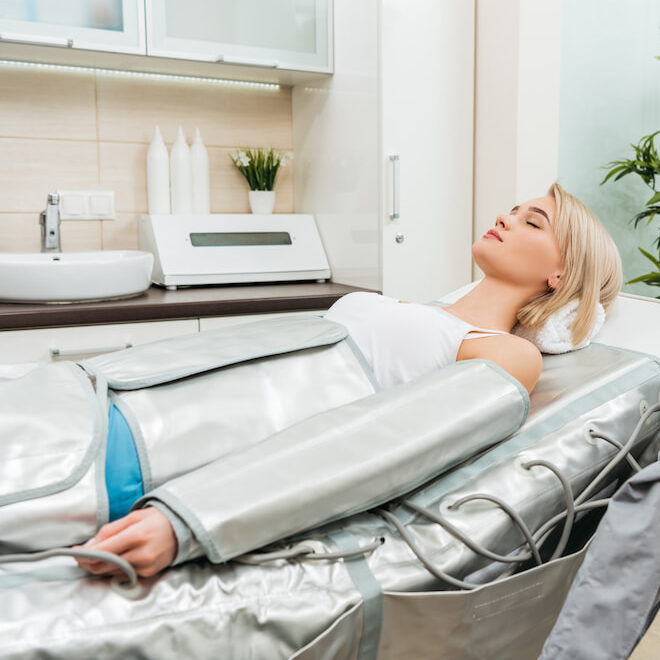 La pressoterapia è un trattamento estetico, che migliora il rendimento del sistema circolatorio e del sistema linfatico.